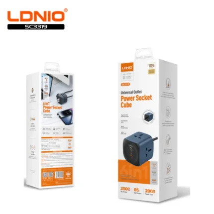 Beautifully & thoughtfully crafted 65W super fast charging solutions with 2 x USB C Ports, 1 x USB A Port and 3 x Universal Outlets that enables 6 devices to be charged simultaneously. Built-In 6.5feet highly durable power cord. Color: Blue & Black Model: SC3319