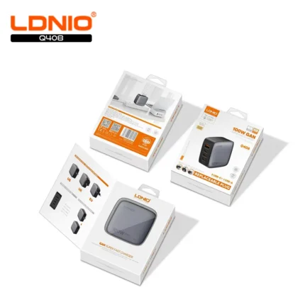 Super Fast 100W Gan Fast Wall Charger with 1 x USB A output, 3 x USB C outputs and 1 x Lightning output to charge multiple devices simultaneously. Color: Blue & Black Model: Q8