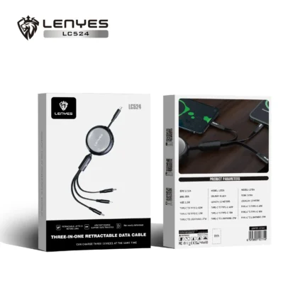 Lenyes LC524, Three-In-One Retractable Data Cable, Black
