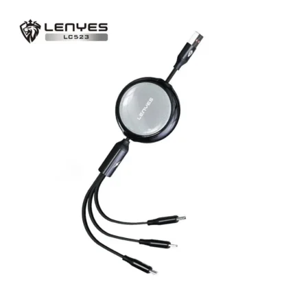 Lenyes LC523, Three-In-One Retractable Data Cable, Black
