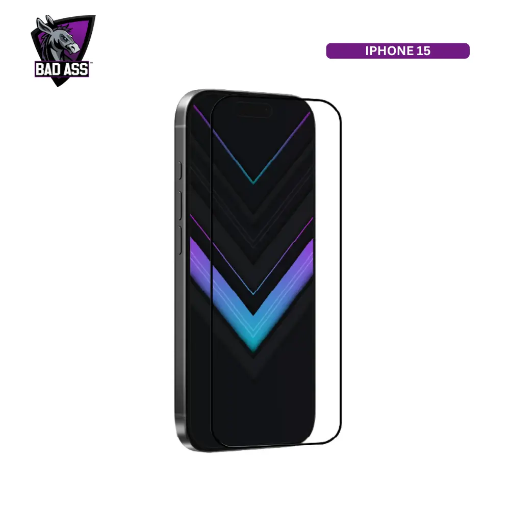Features: Bad Ass Ion Glass, HD Clear, with Screen Break Warranty For iPhone 15
