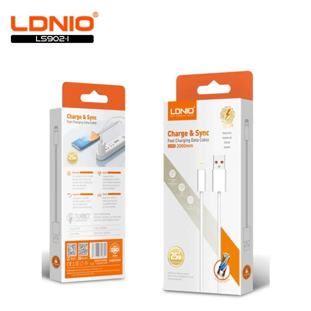 LDNIO LS902i, Charge & Sync Fast Charging Data Cable 2000mm, 25W, White