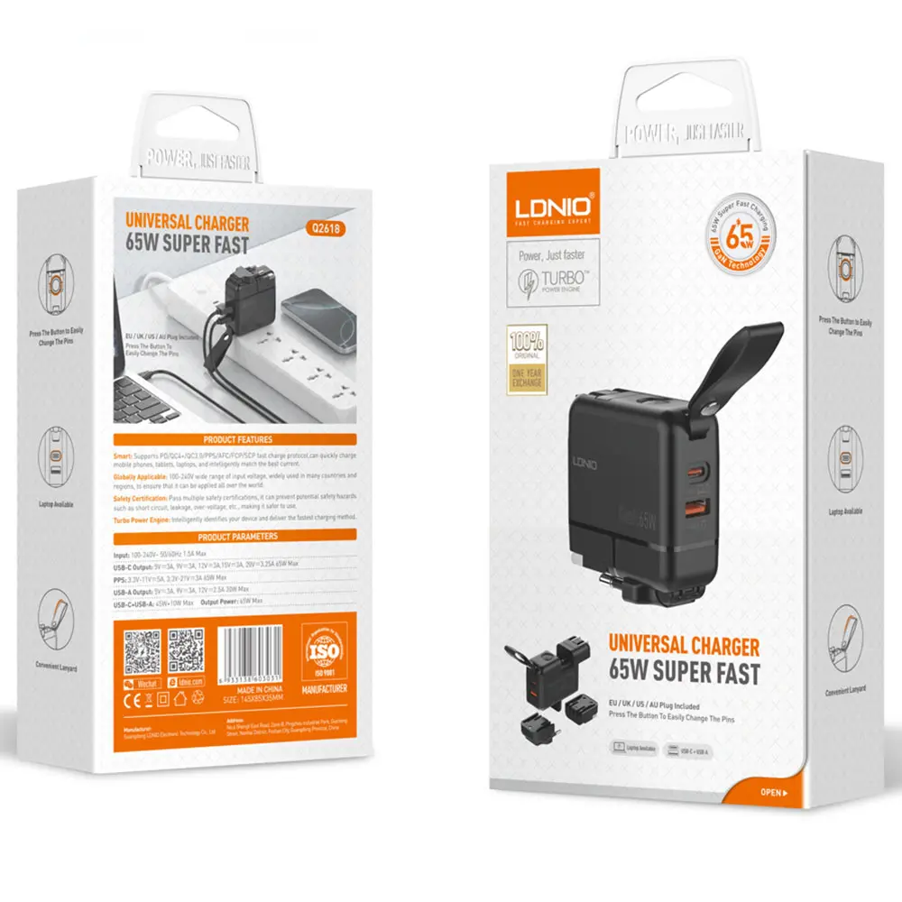 LDNIO Q2618, 65W Super Fast Universal Charger, Black
