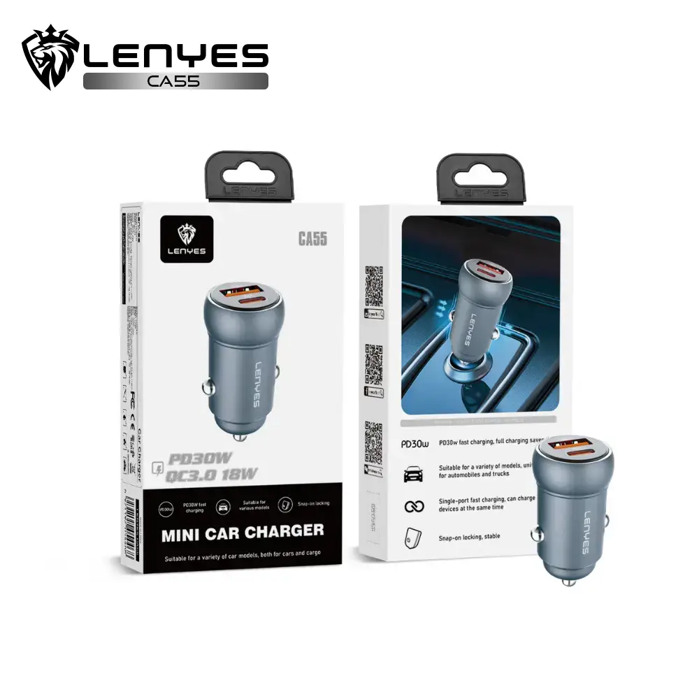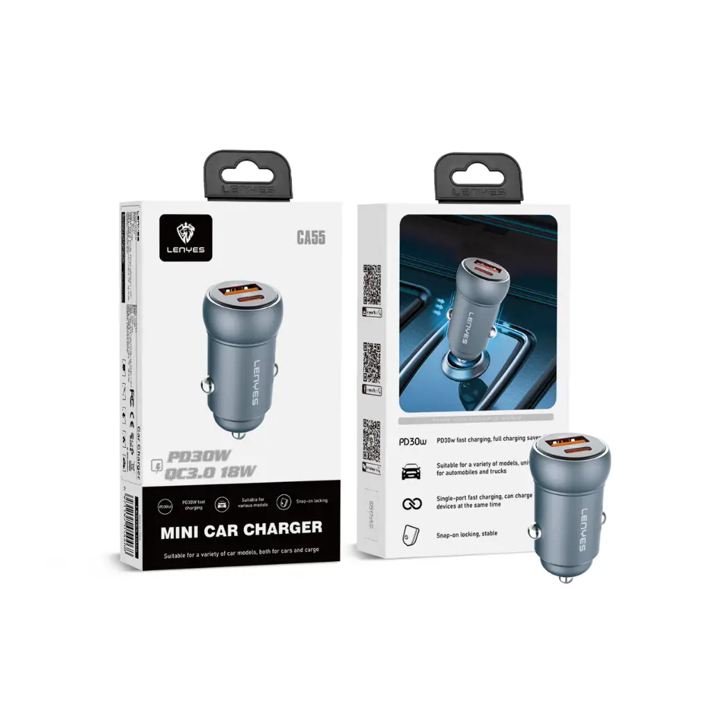 Lenyes CA55, PD30W, QC3.0 18W, Car Charger, Blue