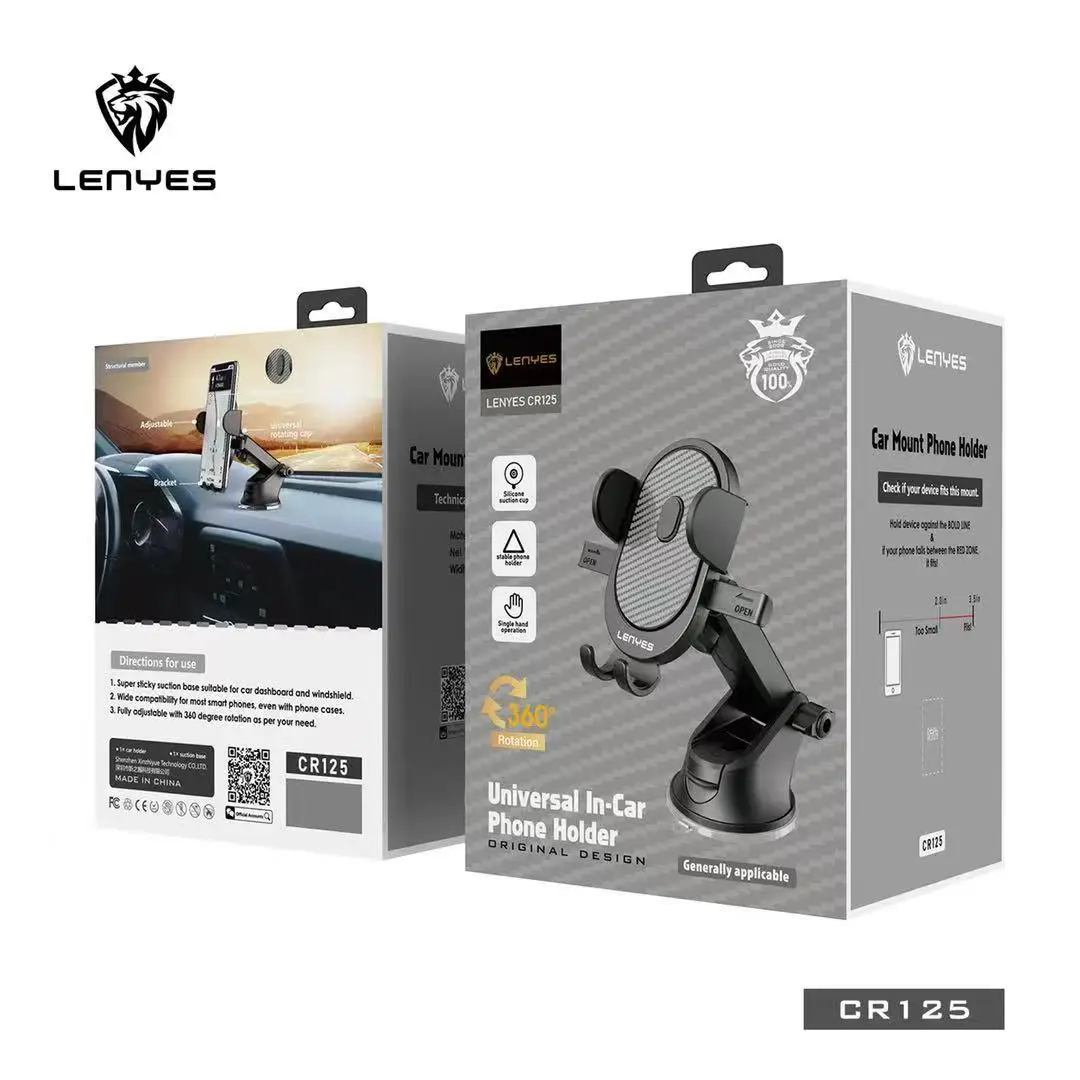 The Lenyes CR125 Car Phone Holder is a simple and practical accessory for safe driving. It securely grips your smartphone, keeping it steady while you focus on the road. Easy to install on your dashboard or windshield, it offers hands-free convenience for navigation, calls, and music.