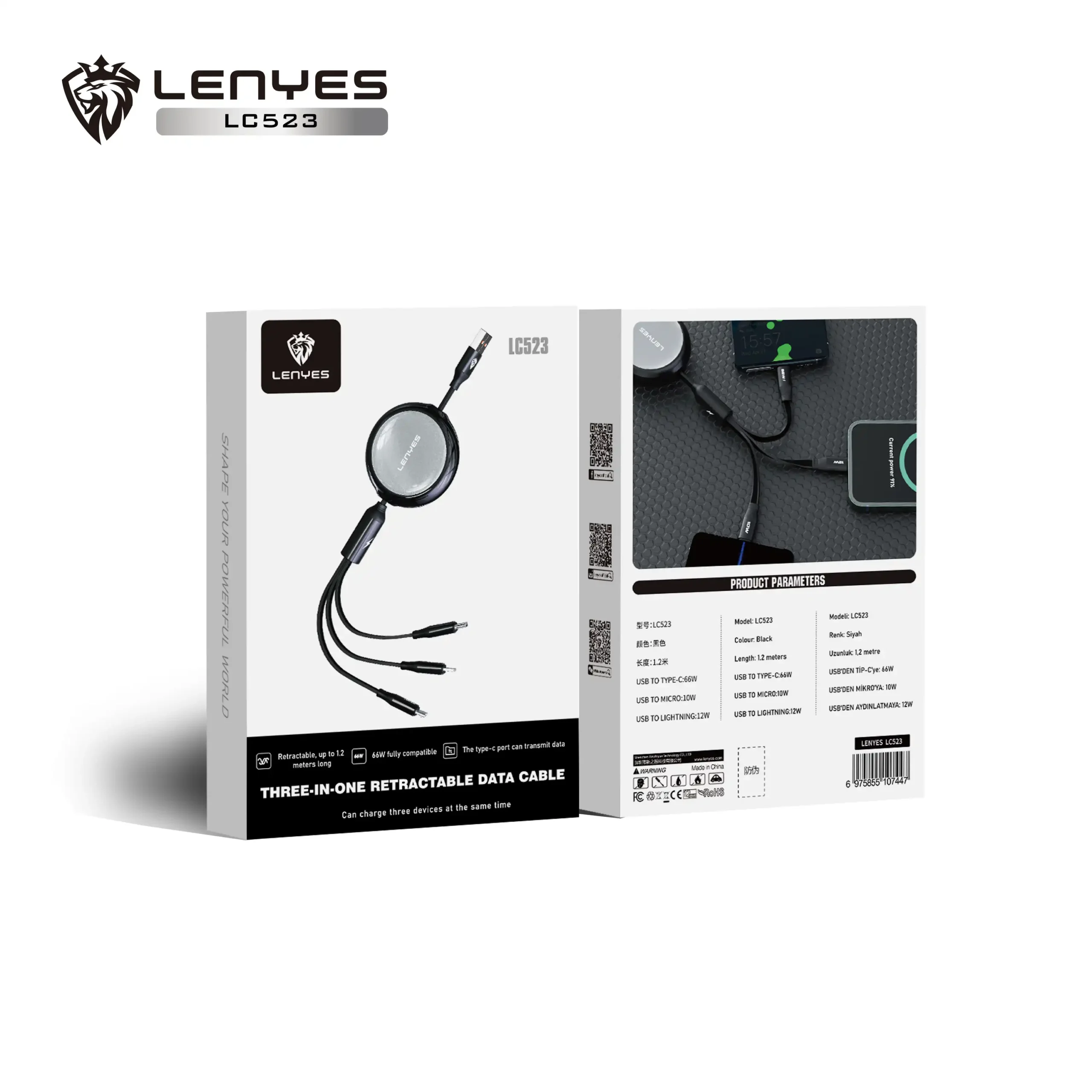 Lenyes LC523, Three-In-One Retractable Data Cable, Black