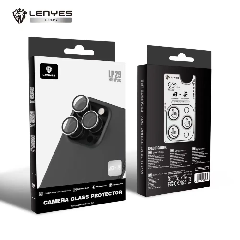 Lenyes LP29, Camera Glass Protector for IP 15 Pro / 15 Pro Max, Silver