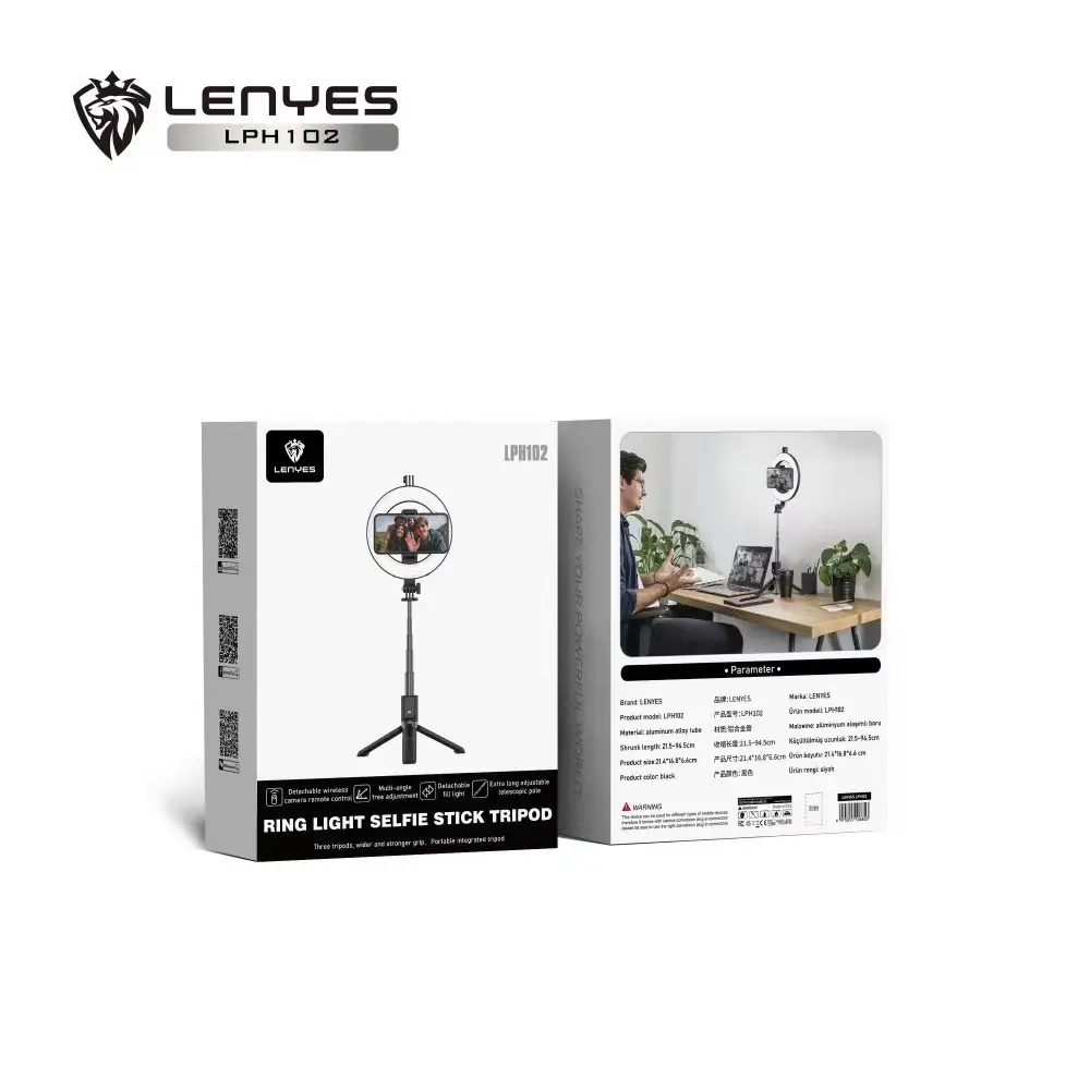 Lenyes LPH102, Ring Light Selfie Stick Tripod, Black