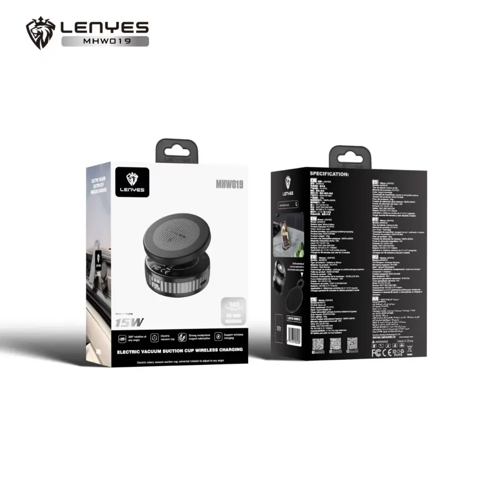 Features: Lenyes MHW019, Electric Vacuum Suction Cup Wireless Charging, Black
