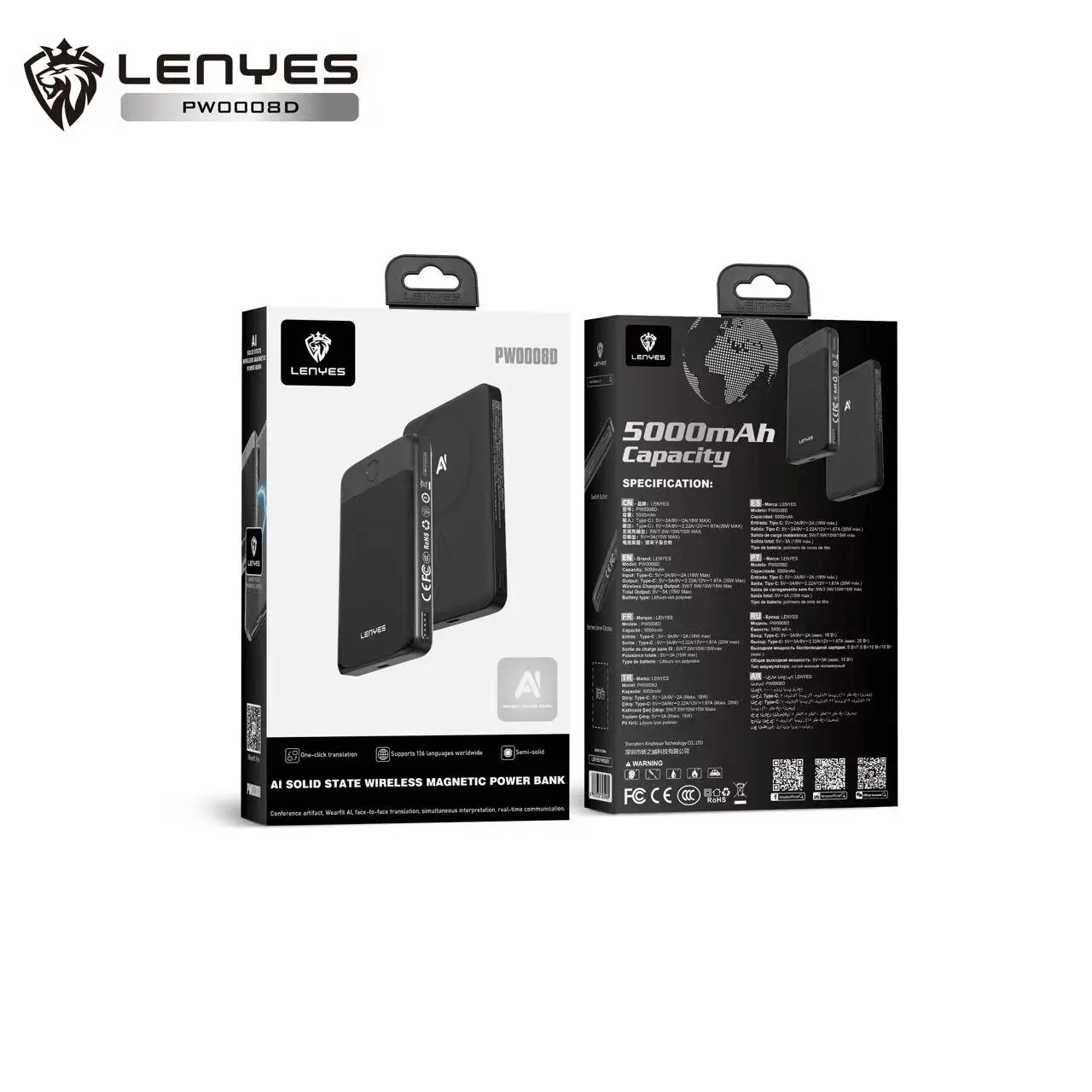Lenyes PW0008D, AI Solid State Wireless Magnetic Power Bank, Black