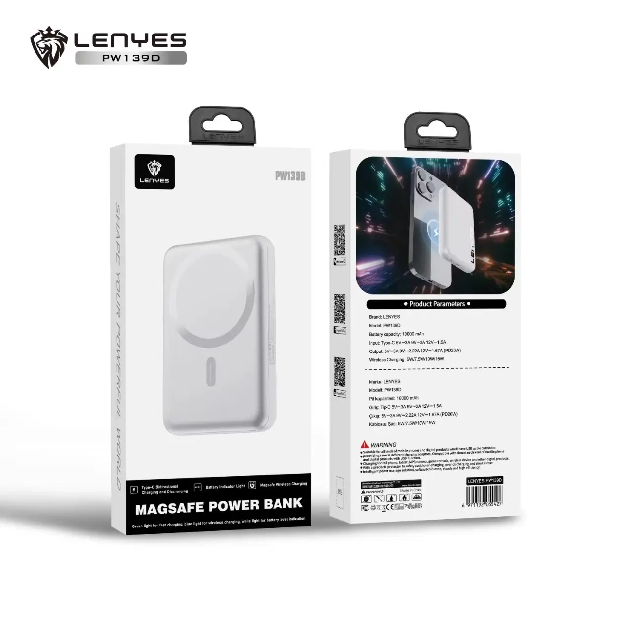 Mini MagSafe 10,000mAh Power Bank with 1 x USB C Port for both fast 20W input & output. Comes with 3 colors led lights indicators to show fast charging, wireless charging and battery levels.