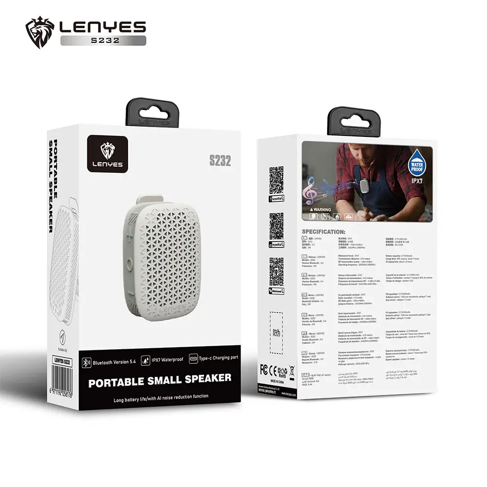 Lenyes S232, Portable Small Speaker, White