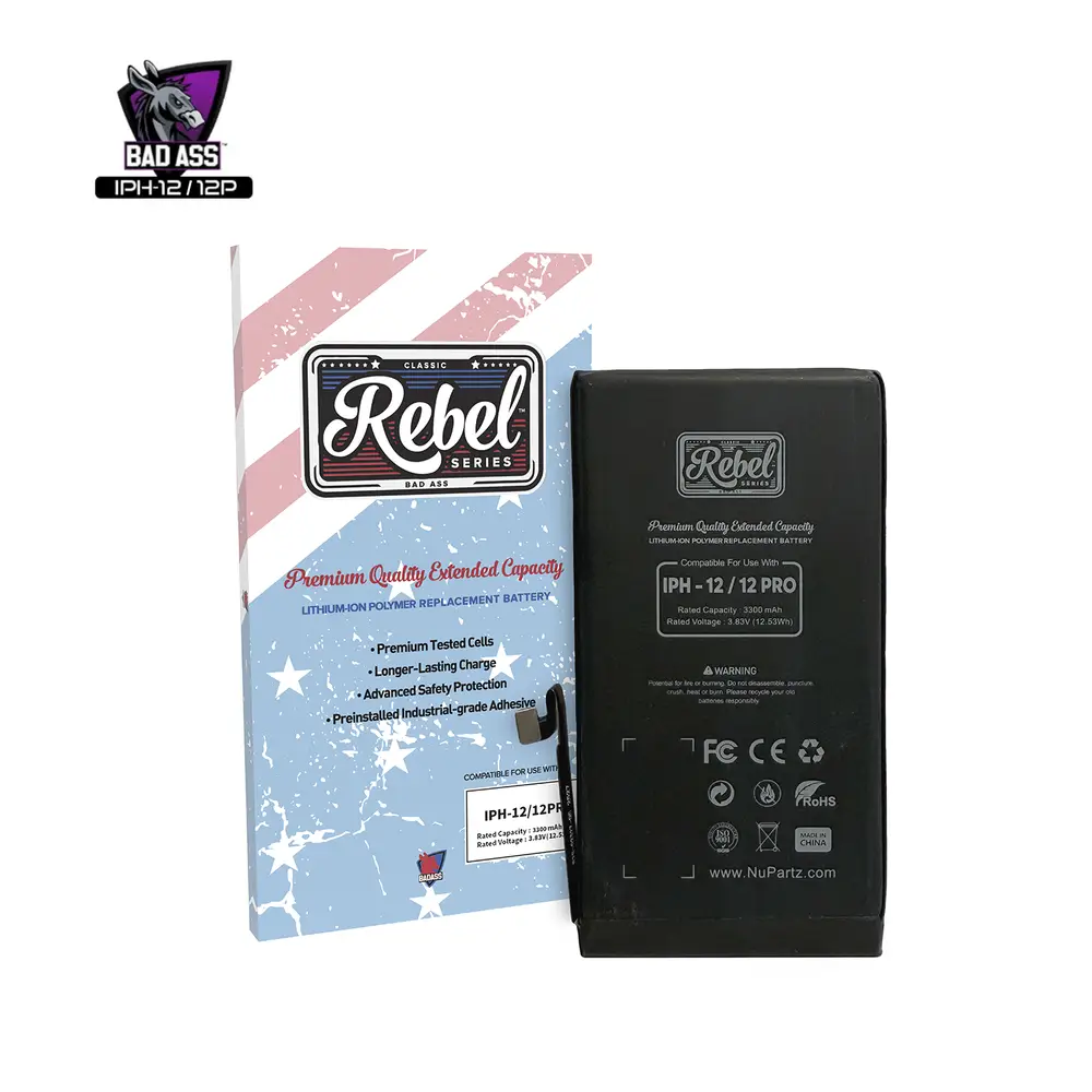 Features: Replacement Battery Compatible With iPhone 12 / 12 Pro, 3300 mAh, Rebel